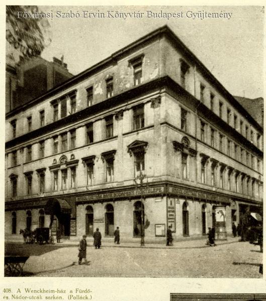 “Én Budapesten, 1824. június havában születtem, a hajdani Cukor, most gróf Károlyi utcában azon még most is létező kétemeletes házban, mely a Reáltanoda szomszédságában áll s a gróf Károlyikertre bír kilátással. 1828 nyarán költöztünk az akkoriban egészen újonnan fölépült Pollák-, most gróf Wenckheim-házba (Fürdő utca és Szél utca szöglet), mely az akkor dívó építkezést tekintve, fölötte fényesen berendezett bérháznak volt mondható. Pollák építész sok ízléssel bírt, s József főherceg, nádor pártfogoltja lévén, mint ilyen lett megalkotójává Budapest legszebb épületének…”