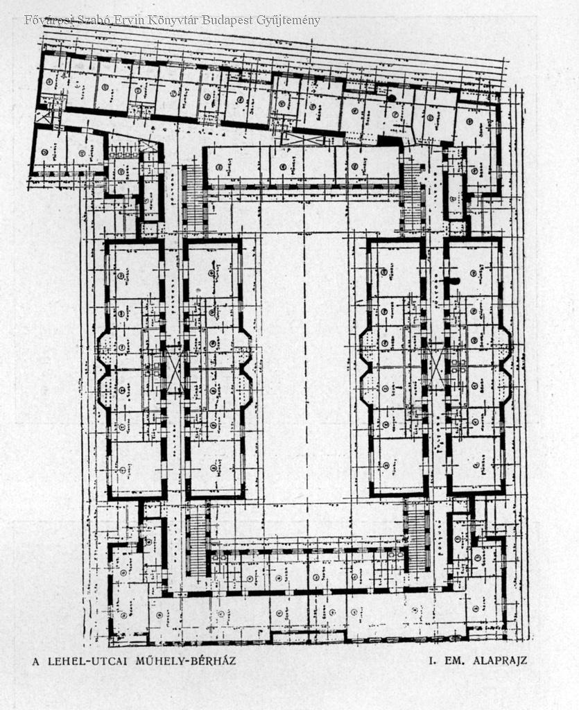 “A kislakások és iskolák építésére felügyelő bizottság legutóbb tartott ülésében foglalkozott a műhelybérház terveivel. Az ülésen Krátky János tanácsos elnökölt és Kabdebó Gyula műszaki tanácsos látta el az előadó tisztet. A tervek általában megnyerték a bizottság tetszését, csak a suterainben tervezett műhelyek kérdésekörül támadt vita. Szabó Sándor tiszti főorvoshelyettes ugyanis elvi szempontból ellenezte ezeknek a felállítását, aminthogy ö ellene van minden, csak részben is föld alá nyíló helyiségnek, mert a tapasztalat azt bizonyltja, hogy az ilyen helyiségekben leginkább gyűl meg az utca pora és vele minden betegséget okozó csira.”